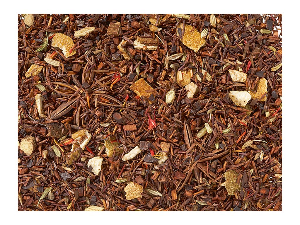 Čaj rooibos z Jihoafrické republiky, anýz, skořice, hřebíček, muškátový oříšek, kardamom, pepř, aroma