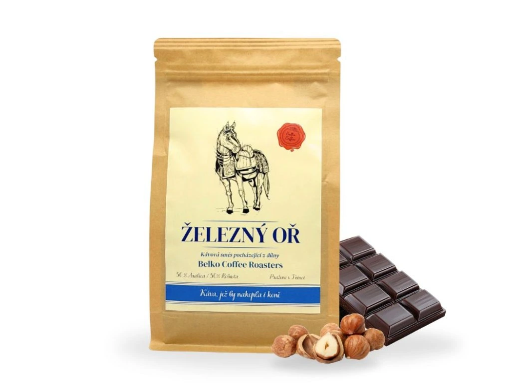 Kávová směs s poetickým názvem Železný Oř je určena pro milovníky chuťově výrazných a intenzivních káv s vyšší hořkostí a minimální aciditou. Jedná se o směs arabicy a robusty v poměru 50 / 50.